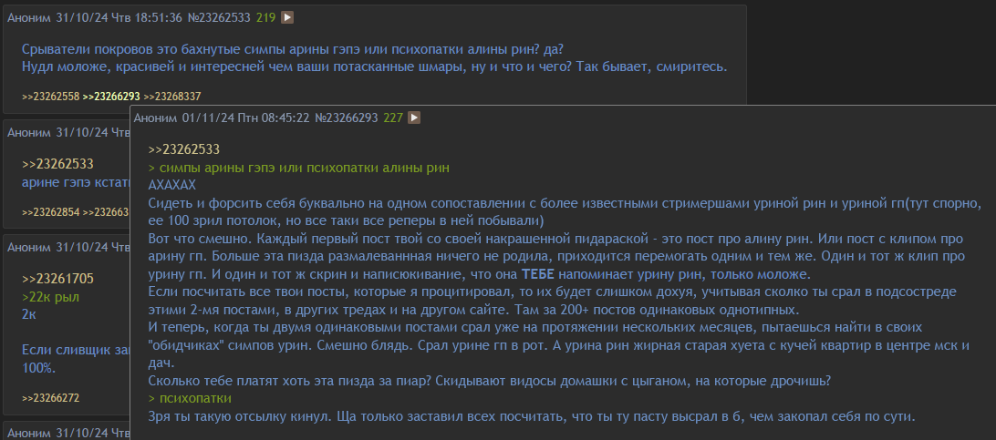 >>26418198 еще этой хуетой вот этот пидрила срет, он каждый стрим к рыжопичу залетает и подбивает ту форсить степлера, хосты кидать и чтоб та взяла степлера в поездку в спб, как тогда какую-то соню взяла в мск, к которой тож этот червь подкатывал и ходил на сходки до той сходки в мск с соней и рыжопич и это 100% инфа, что сегодня либо он, либо теневой срал этим калом, который никак отметку в 20 зрил не может уже годами перепрыгнуть при всем подсосе, при всем постинге здесь, при том, что как шмарадаун один(не паджит, другой лысый который очкарик) тож взяла ростовую фигуру жопича на задний фон