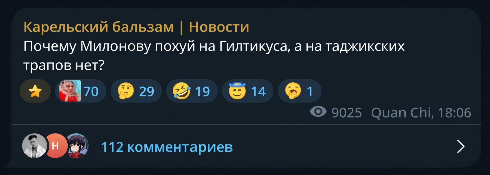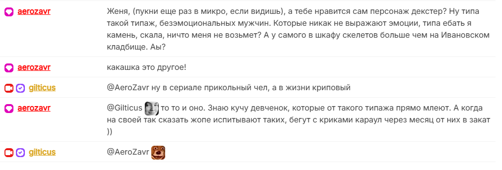 особо агрессивные симпы Гилтика это 100% хохлы (даже весьма вероятно что ципсошники) качающие повесточку. полюбас этими пидорами органы должны занятся, как и самим трапом. по факту Гилтика можно признать иноагентом: распространяет пропаганду, получает иностранные донаты, имеет криптокошельки и левые доходы (явно без уплаты налогов). если силовикам копнуть можно много чего найти.