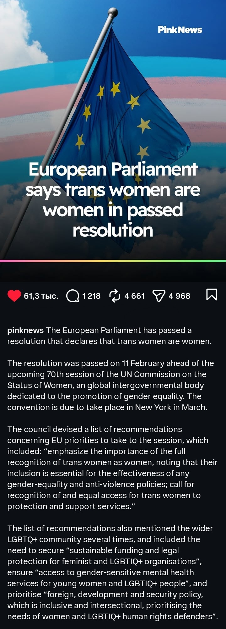В итоге, это портрет глубоко неуверенного в себе человека, который использует трансофбию как костыль, чтобы поддерживать свою самооценку за счет попыток унизить другого