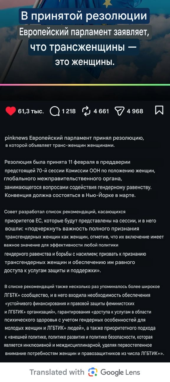 Именно что, отношаться мужику с другим мужиком или трансженщиной это и есть быть тру натуралом - настоящие традиционные ценности!