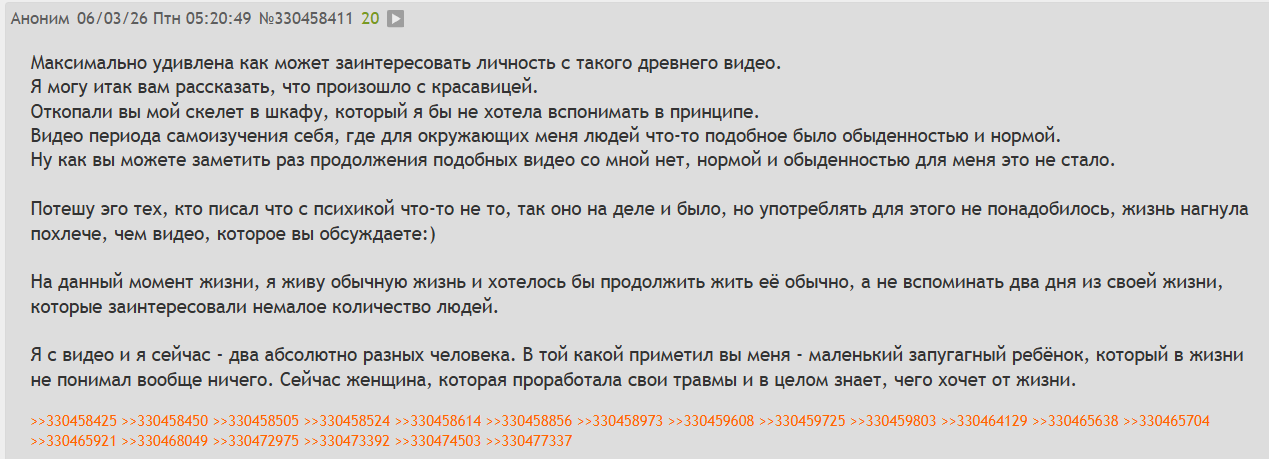 Почему толянотред порадил такое количество больных людей с девиациями? Перчиколюбители, любители собачьих пенисов, сильных женщин качков... Допустим они из за девственности свихнулись, но почему тогда когда то женатый человек скатился до фотографирований детей на улице. Что к этому привело мне не понятно