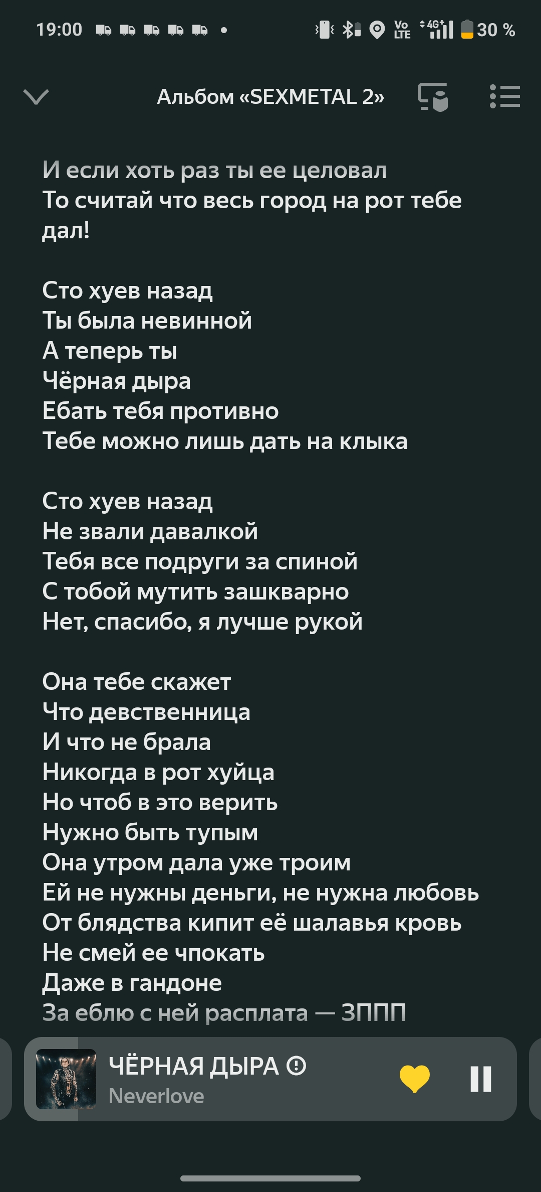 Самый дерьмовый вокал у баб это недо-харш недо-гроул стервозный, как в слоте и как у фредгитариста в группе. Это полное дерьмо. А лучший это или крики визгливые истеричные, как agoraphobic nosebleed на зелёном альбоме, или харшечитка, как у guano apes. Или полностью чистый, как evanescence, как у негрихи на фите sevendust licking cream, как i want love в треке саундтрека сайлентхилла. Ещё проституточный прокуренный стервозный вокал как у Кортни Лав тоже заебись. Но эсктрим технически безопасный говнохарш говногроул слота и джейс это кал.