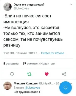 >>26437269 Мне тоже коньяк предложил, я говорю не, давно в завязке, он а молоко пьешь? Я грю тоже гет, непереносимость лактозы. Он хотел просто поговорить, но мне такие знакомства ни к чему, хотя мог интересные кулстори послушать про квн