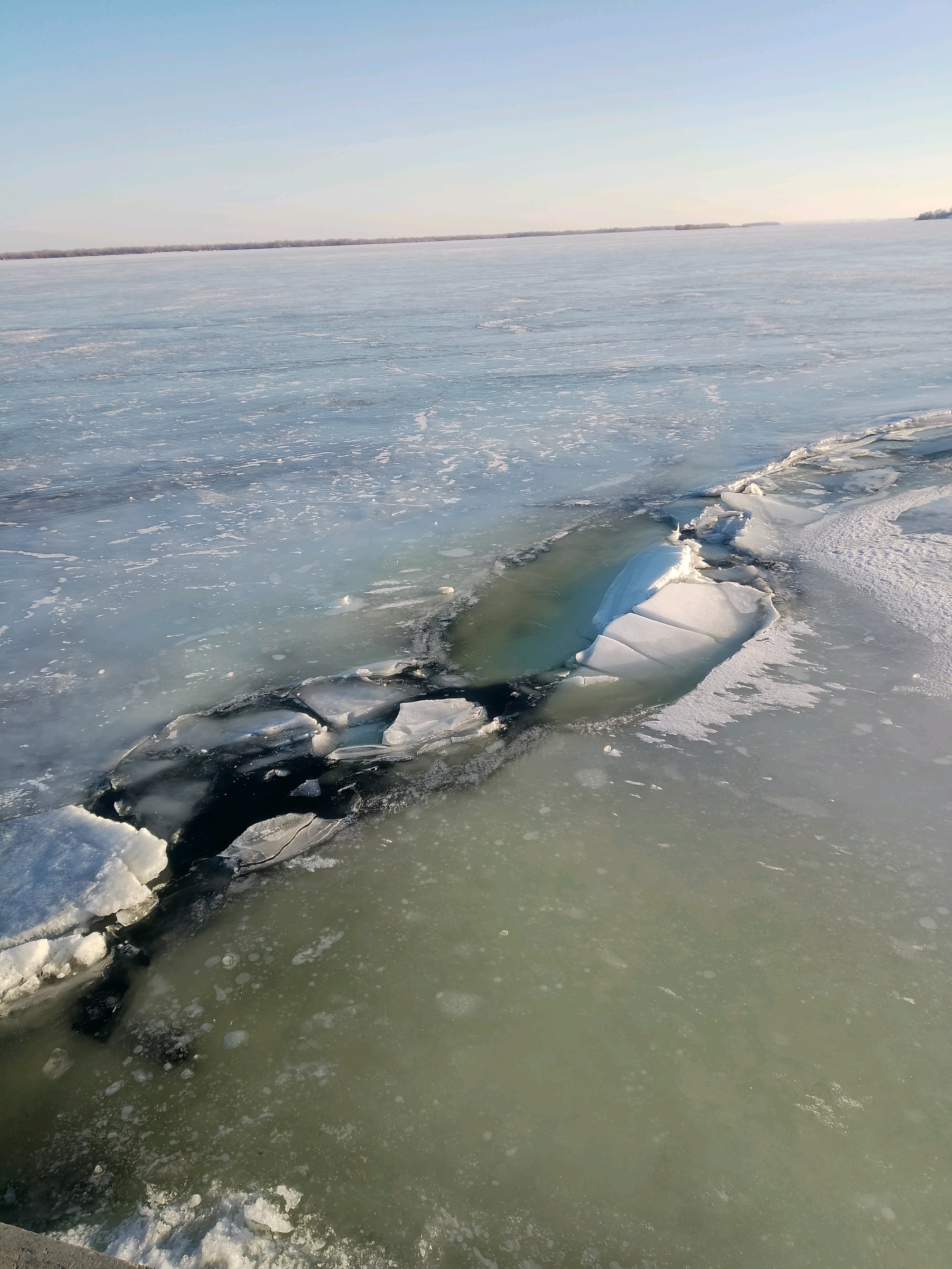 Пиздюки нашли единственный способ как покинуть Саратов Разъебно сегодня на Волге, яркое солнце очень хорошо подчеркивает все неровности и трещины на льду