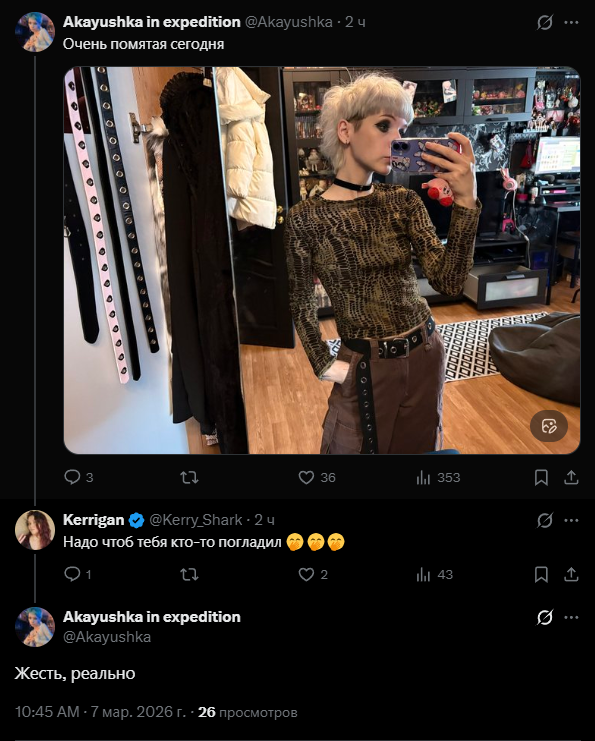 Воооооот. Там малого того еще, к деду я надеваю специальную гречневую "стариковскую" одежду, так как за молодежную он меня хулит, вопросы всякие задает, смеется. Учит, что так нельзя выглядеть в обществе. И чтобы это ничего не слышать больше я стараюсь не выебываться и одеваться как он учил. И представляете: выходит такой додик-старичок из автобуса с двумя пакетами продуктов Магнит. А ходят зумерки, смеются, все это на виду ведь. А ты отворачиваешь взгляд, делаешь вид, что ничего не видишь. Хочется закричать ДА НЕ ТАКОЙ Я! МЕНЯ ЗАСТАВЛЯЮТ ВСЕ ЭТО ДЕЛАТЬ И ТАК ВЫГЛЯДЕТЬ! И желание одно - быстрее домой добежать и скрыться.