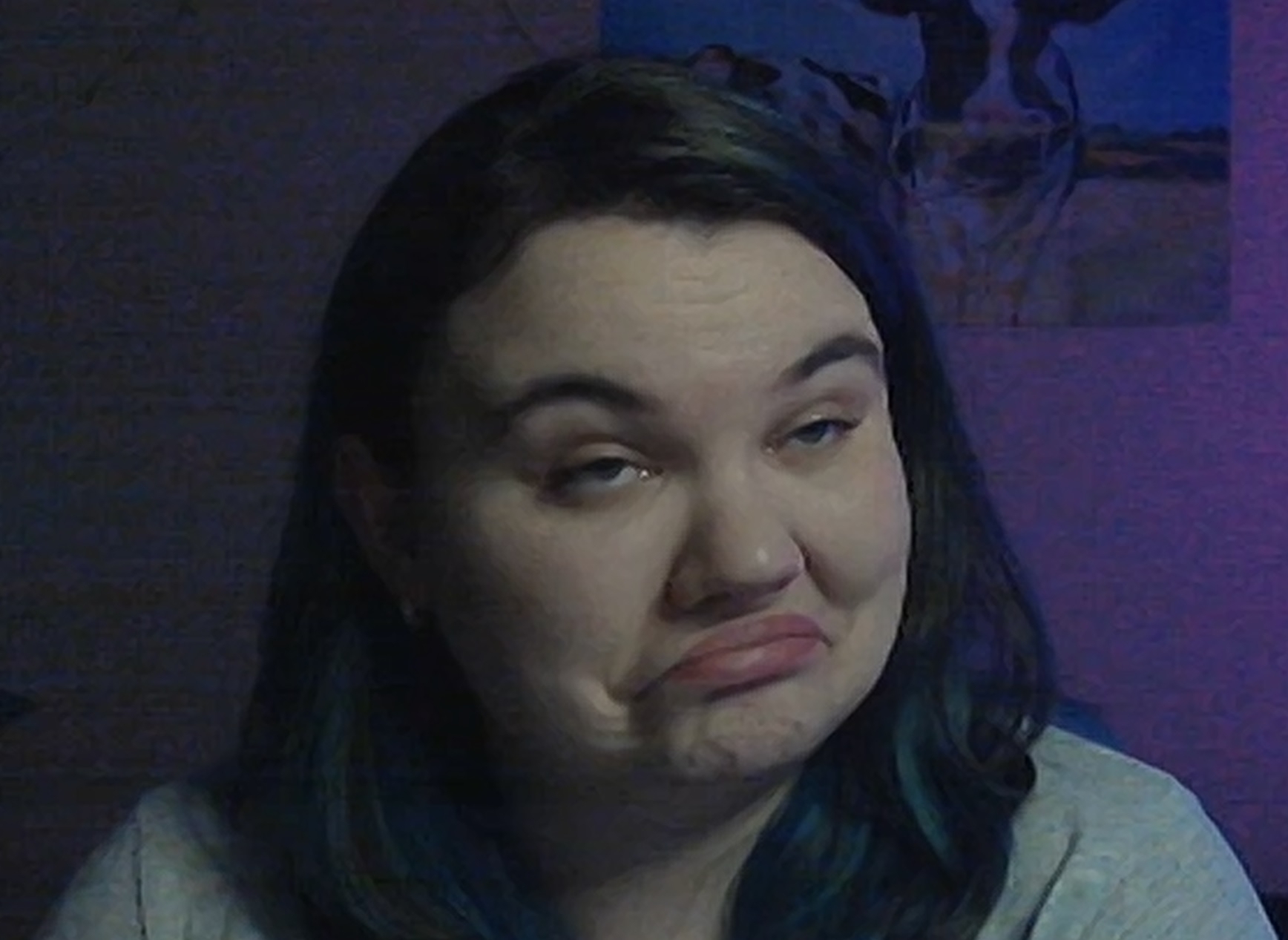 Я думаю она просто поддает хорошо пива и проч. Это объясняет что жрет много и что борода у нее. И то что связалась с патлатым бомжом в конечном итоге мыкаясь по съемным хатам.
