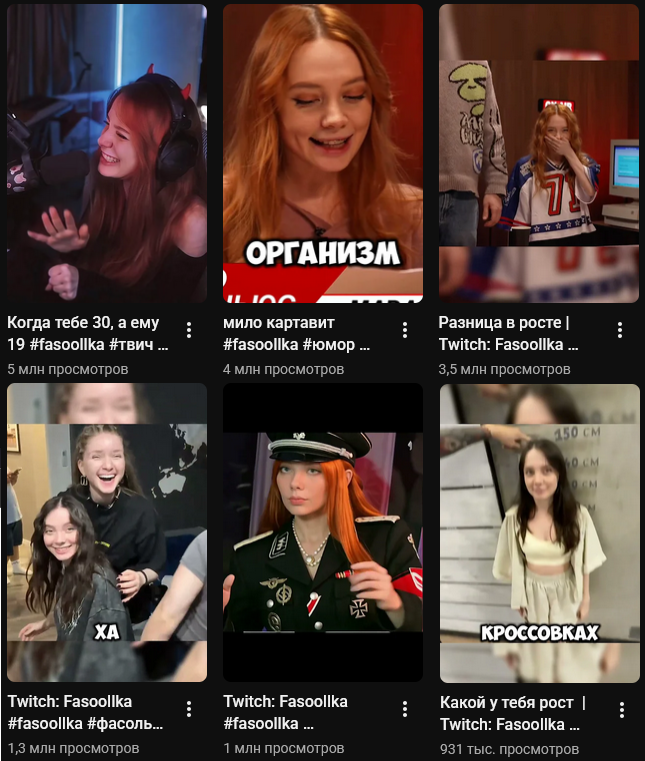 >>26449444 Я недавно стал замечать, что мне в ютуб начали реки с ней попадаться, хотя я там ниразу ее не смотрел и не искал в поиске. Причем охваты на рилсах и роликах не маленькие. Вот народ и прет с тт и оттуда мб