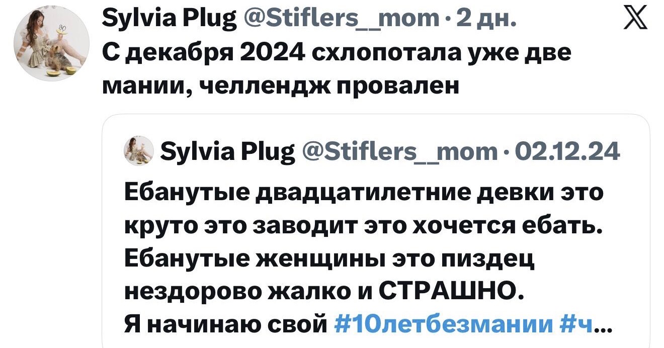 Больше никто не подходит значит она опять пиздит и пытается через твитор и двач вызвать ревность у бывшего анальника и повыебываться перед двачерами