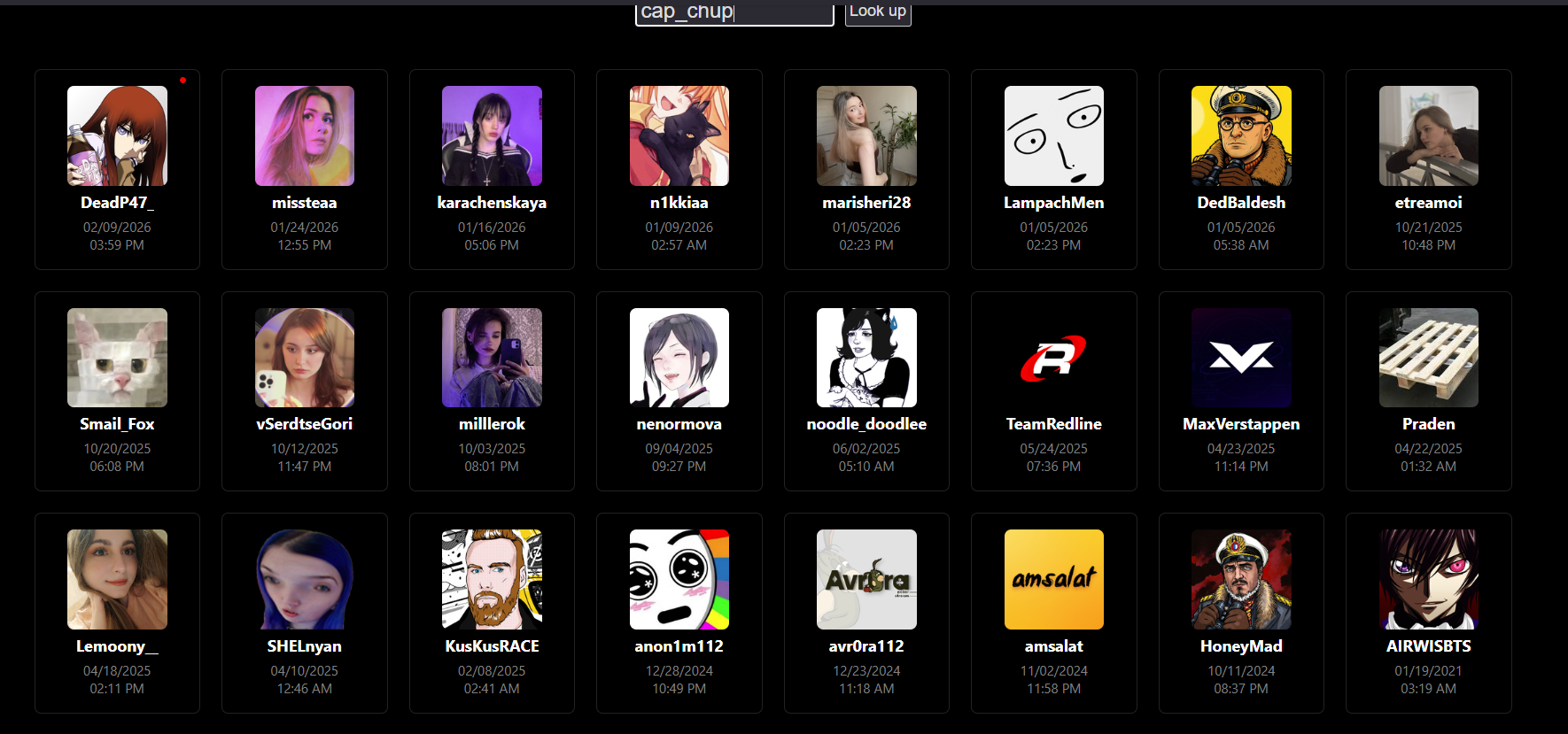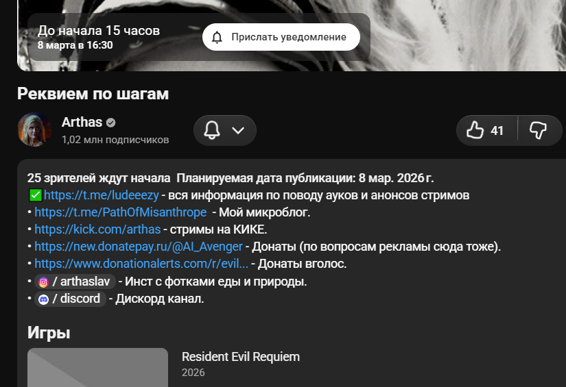 >>26441499 я зашёл на сайт со стримами и там не даёт посмотреть. по ссылке открываются стримы, а потом пишет, нет такого акка, но там на странице много его стримов