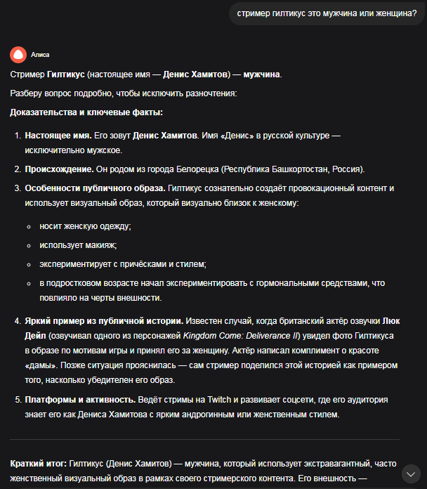 >Такое и было конечное желание - пришить сиськи, надеть платье и стать ведущей марамойкой на твиче ? ну да, изи мод. Либо пахать на заводе за 30к в месяц в магнитке, либо сосать хуи и давать в жопу, но за миллионы. Дениска не очень умный сам по себе, поэтому как мужик не смог реализоваться.