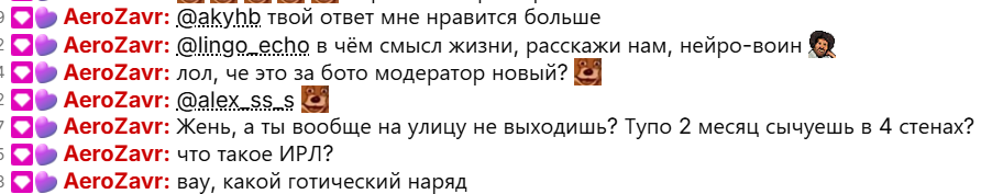 Я не понимаю как Женечка спокойно спит ночами, если к ней в любой момент в 5 утра может явиться Милонов с группой захвата. А среди зрителей твитча полно доносчиков.