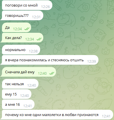 Тараныч сидит в специальных секретных тг-чатах от самого Эпштейна с мальчиками и девочками подростками, которые 24/7 обсуждают только ёблю. В такие тг-каналы попадают только VIP персоны мирового масштаба, звёзды Голливуда, политики, миллиардеры.