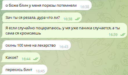 >>26449591 Я уже говорил, что мне надоело с ними пиздеть, я вообще хиккан и общение с нормисами меня не прикалывает. Я тред не читаю из-за этого, пропускаю по 2-3 треда, нахуй только подписываюсь на них, если не читаю даже? Скоро поудаляю чаты со всеми тёлками, оставлю парочку групповых чатов, чтобы иногда троллякать с зумерами и в войсе пиздеть. Знаешь чё, Вахтыч, я когда базарю с ними, мне пиздец хочется, чтобы мне снова было 16-17, да даже 20-22 или просто вернуться на 20 лет назад, тогда я бы точно не проёбывал дни за ПК троллясь с долбоёбами.