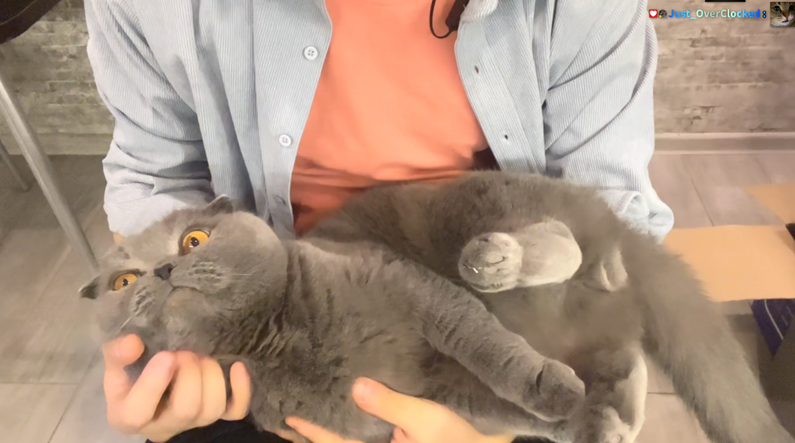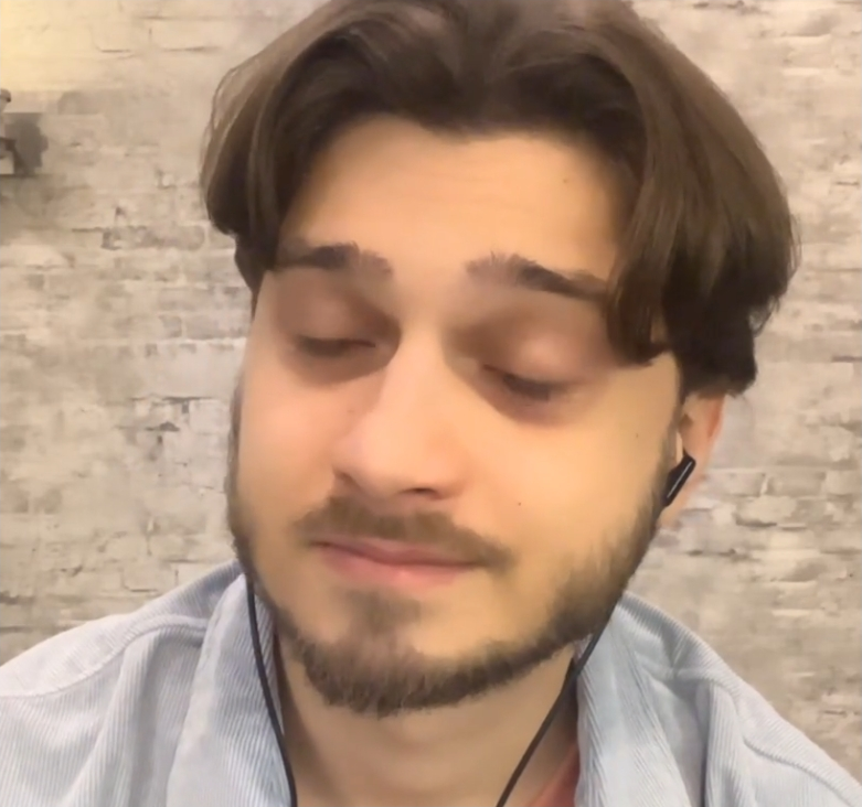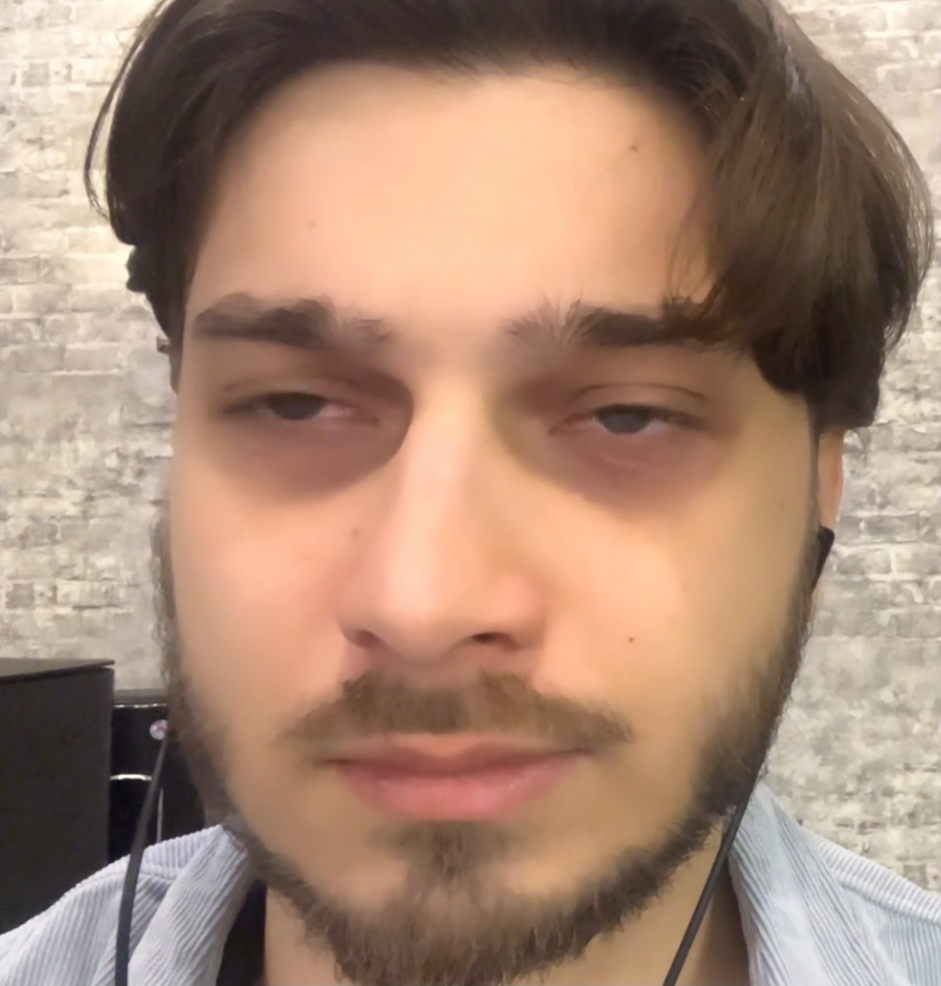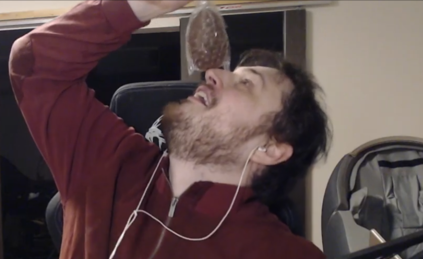 В ролике с отметки 2:52 президент начинает кашлять, показывает на горло и просит дать воды. После этого Путин предлагает перезаписать обращение, несколько раз прокашливается и заново произносит поздравление.