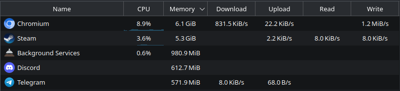 Чё то маловато, поди без расширений сидишь и все выгружено давно из оперативки, вкладки не загружены а просто стоят