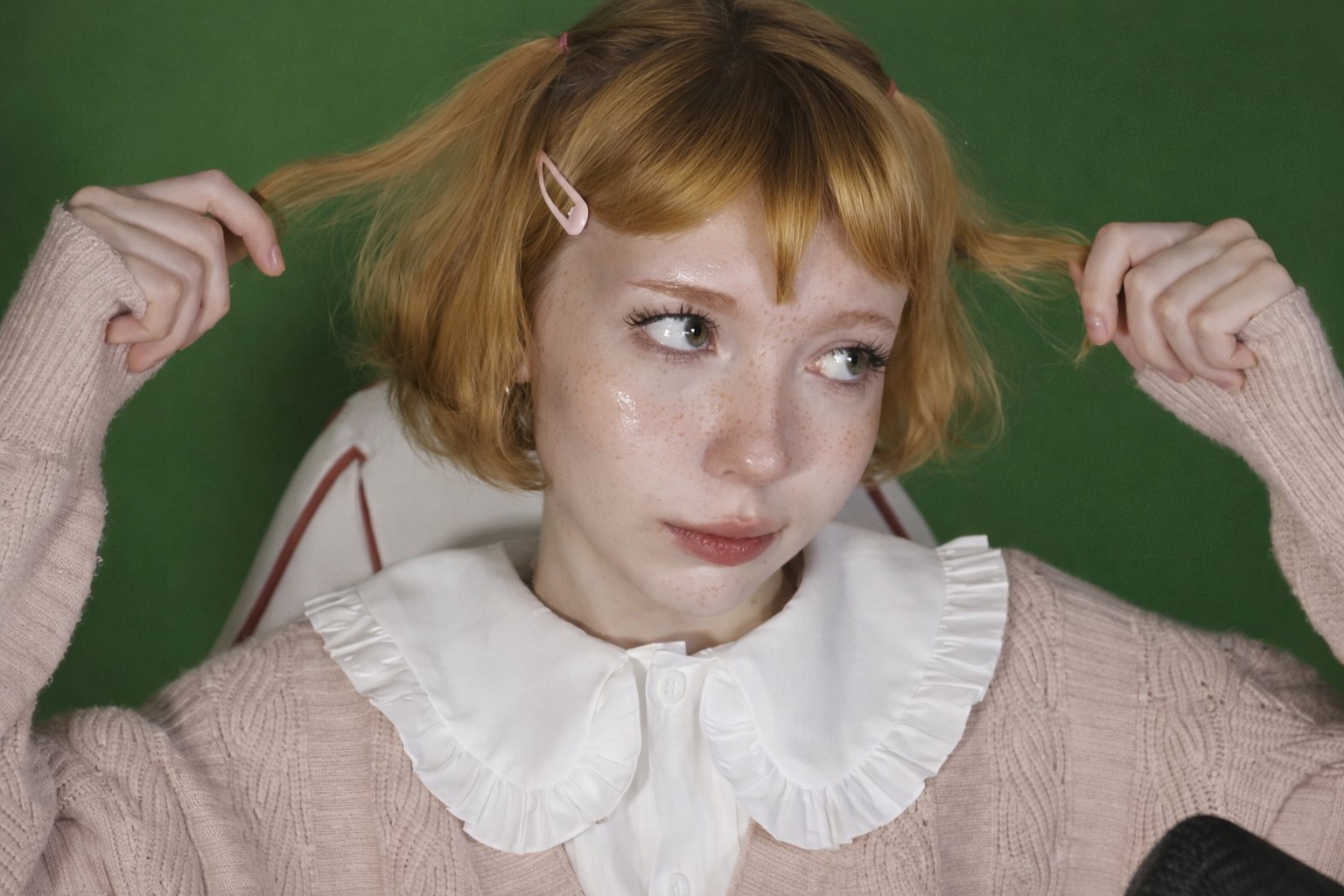 волосы висят, ты долбоёб не видишь что у него повязка на башке?