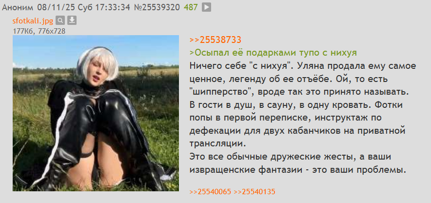 Когда Ульяна была в Москве это апельчмо беспрерывно бомбило, чтобы она ехала к себе обратно, также как и её другие модеры и випы. Им абсолютно похуй на контент. Им не нужно развитие. Им не нужны коллабы. Им нужно чтобы она сидела в деревне, трясла попочкой на камеру и читала каждое их сообщение и чем меньше людей будет смотреть, тем лучше.
