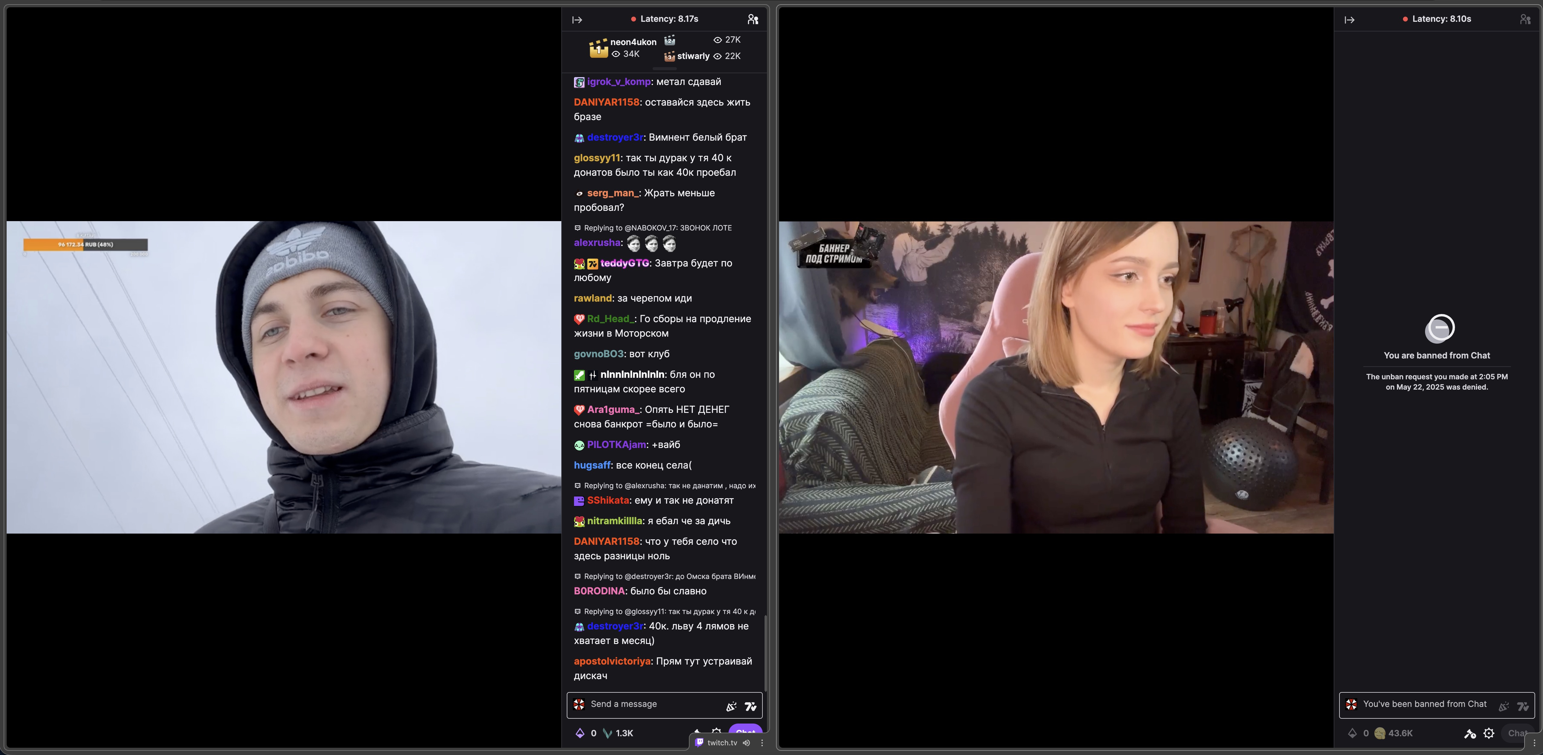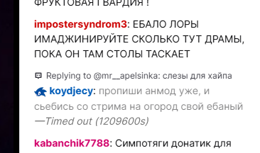 В январе ваще вкатился в твитч, начал ненормову смотреть, у нее там еще карачка в гостях была, норм стримы были, интересно как-то наблюдать, изучал ЛОР, тут торчал. Где-то месяц-полтора смотрел, но начало заебывать. Но сюда захаживал, смотрел нарезки из сауны, про рыбалку, говнострим с лясей. Ща вот открыл ее и буквально минут 10 выдержал, хз голова заболела от нее, в целом ЗА Е БА ЛА.