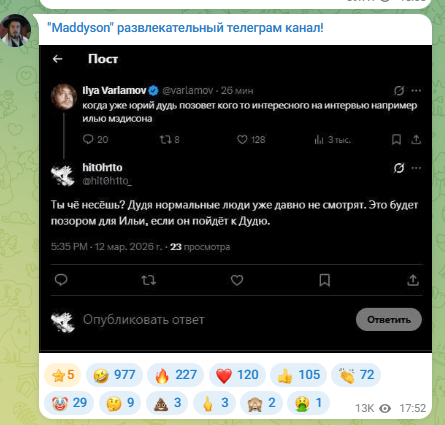 этож надо так обосраться просто спалить свой ник буквально теперь этот комент не имеет значения ведь его написал чемодан который сам же сфоткал свое и скинул илье в тг а после ещё и удалил комент потому что страшно стало ахах