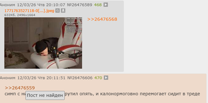 >>26476559 симп с ником "дурак" накрутил опять, и калонормоговно перемогает сидит в треде
