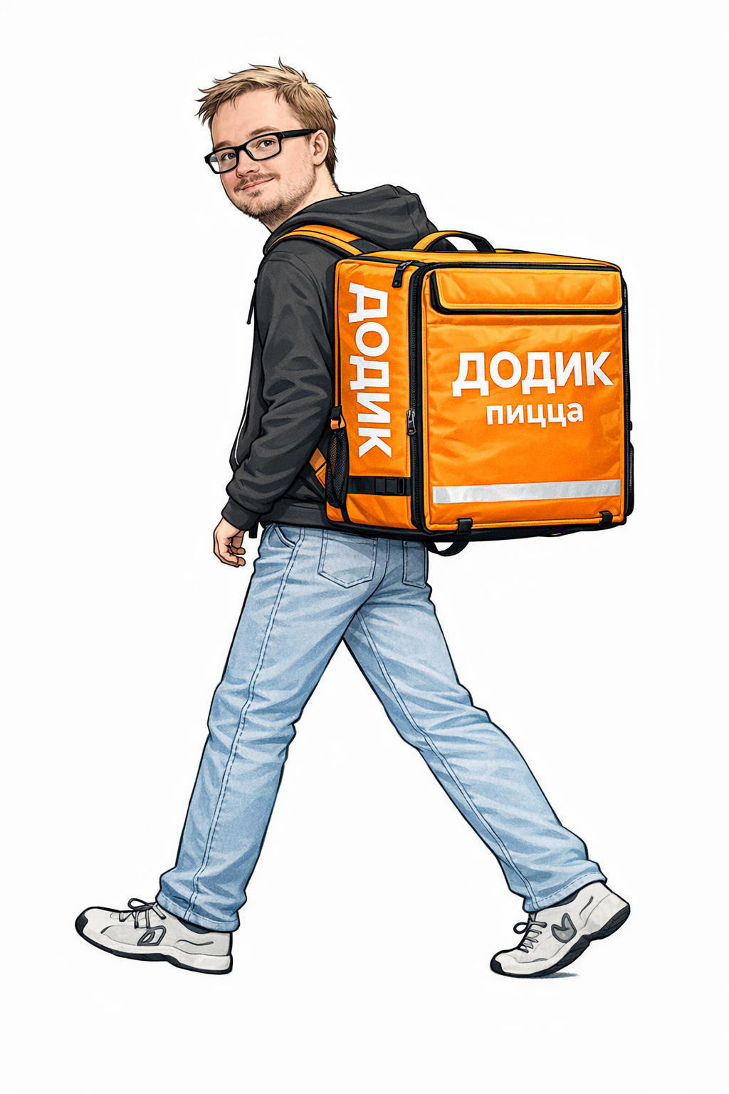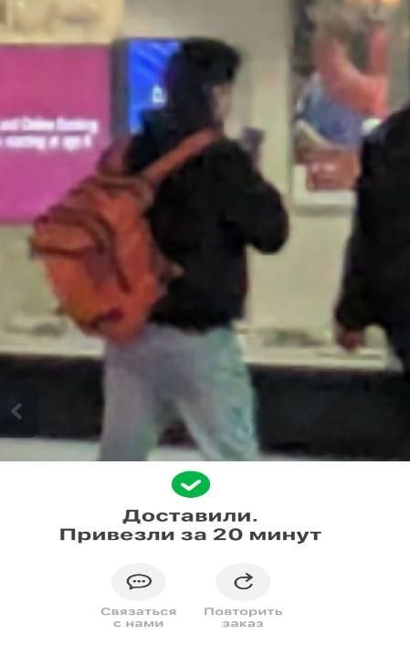 с оранжевым рюкзаком доставщика