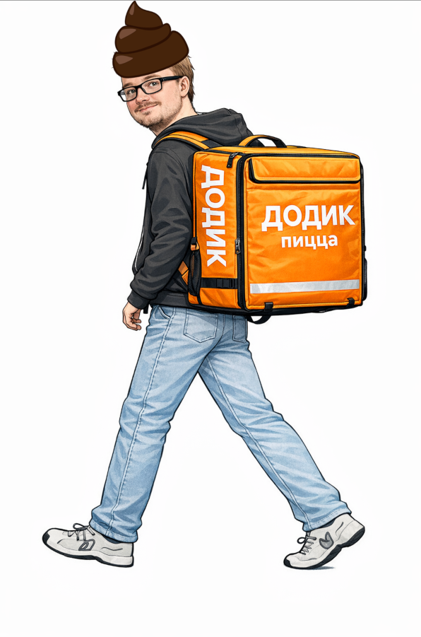 наш додик - кривая спина, рюкзак курьера, штаны полные кала