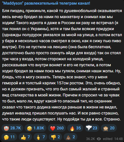 А ведь в профессиональные обязанности Сани Админа буквально входит анализ настроений аудитории и работа с ней, то есть чтение этого треда и чемодаунских каналов. Честно говоря не позавидуешь ему.