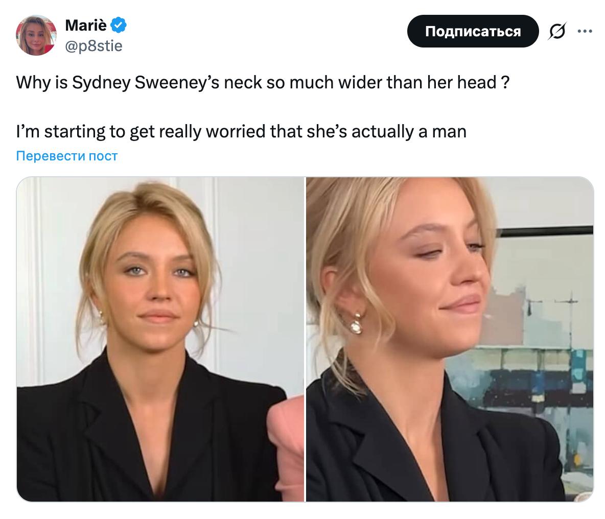‼️ СИДНИ СУИНИ — МУЖЧИНА! Такая теория заговора сейчас вирусится на западе