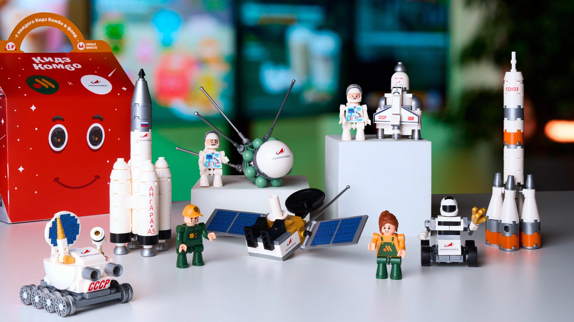 В коллекцию игрушек вошли такие знаковые для российской космонавтики объекты, как корабль «Восток» Юрия Гагарина, ракета-носитель «Союз-2» и лунный ровер «Луноход-1».