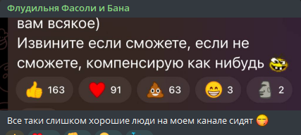 Сегодня чуть не совершил ошибку, захотел в телеге под постом написать что месячные не весомая причина отменять стрим и то что второй раз она отмазками делает выходной перед интой марвел, но вовремя одумался. Набросились бы симпы, меня бы блокнули ещё и твич аккаунт нашли и тоже в бан. Кому бы я что доказал, но заметил то что даже типов с критикой кто раньше мог что-то написать почти не видно. Часть в бане, другая часть под страхом бана перечить госпаже. Контента в последние месяца почти нет, придумывать стримы перестала, боты крутятся, донаты летят. Грустно наблюдать как стример которого смотрел пару лет медленно угасает. Раньше действительно она жила стримами как и говорила. Сейчас же как буд-то каждый стрим фейк эмоции и просто пиздёшь не о чём. Стал смотреть других стримеров и теперь фасоль мне нужна меньше и даже не заметил как от этапа не могу без её стримов стало просто похуй.
