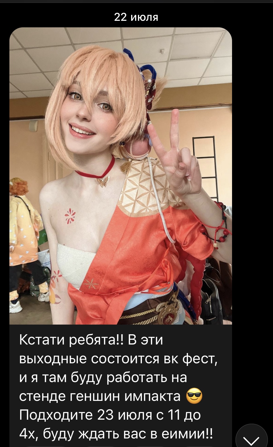 У нее в инсте есть закреп со сторис "FAQ", где она ответила на целых два вопроса - рост и первый косплей. Вау спасибо, оч познавательно, раскрыла себя с другой стороны. И как с таким ведением соц сетей+оверпрайсом на свой "контент" она собирается чего-то добиться, лол?