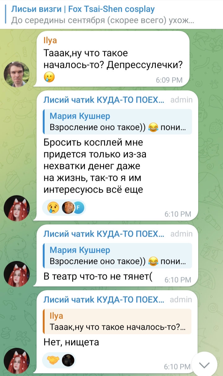 Ахах. https://t.me/foxygencosplay/5371 Хорошо отработали, бомбалейло достигло критического уровня, проткнутый зад подгорел. Вынуждена была запросить помощь у друзящек.