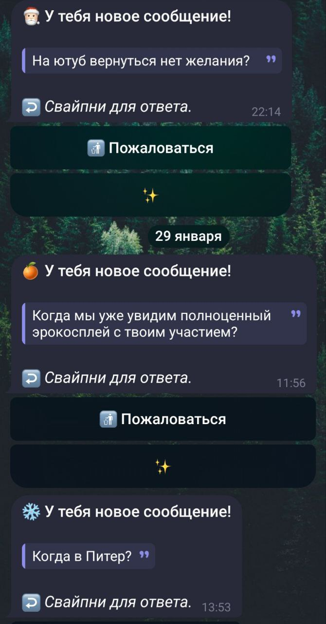 >>1766745 Лучше прохладных про её прошлое запили. Желательно с какими-то пруфами. Спрашивал ради интереса её в тг по поводу прошлого, когда её можно было выебать в жопу за пиво и вай-фай - отнекивается и утверждает, что просто тебе не дала