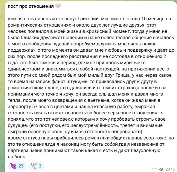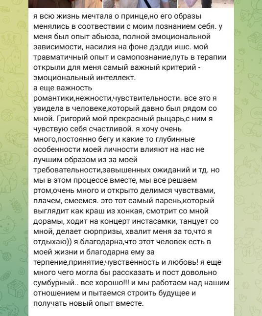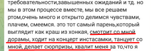 >>1761037 Так она буквально писала в тг, что она видела в нем только друга, а потом он начал меняться ради нее, сменил работу на более оплачиваемую и тогда она поняла
