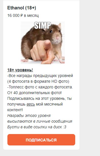 Сейчас, будучи симпом на фансли, ты будешь получать сообщения от том, как было бы классно, если бы ты ее трахнул, приправленные кринжовыми эмодзи кабачка. Стоимость фотосетов на фансли тоже заметно возросла. Если раньше самый дорогой сет из почти 50 фото стоил 145 долларов, сейчас изволь заплатить 175 за 11 фоток (за 200 баксов можно купить Patreon, где ты получаешь более 200+ фото в хорошем качестве)