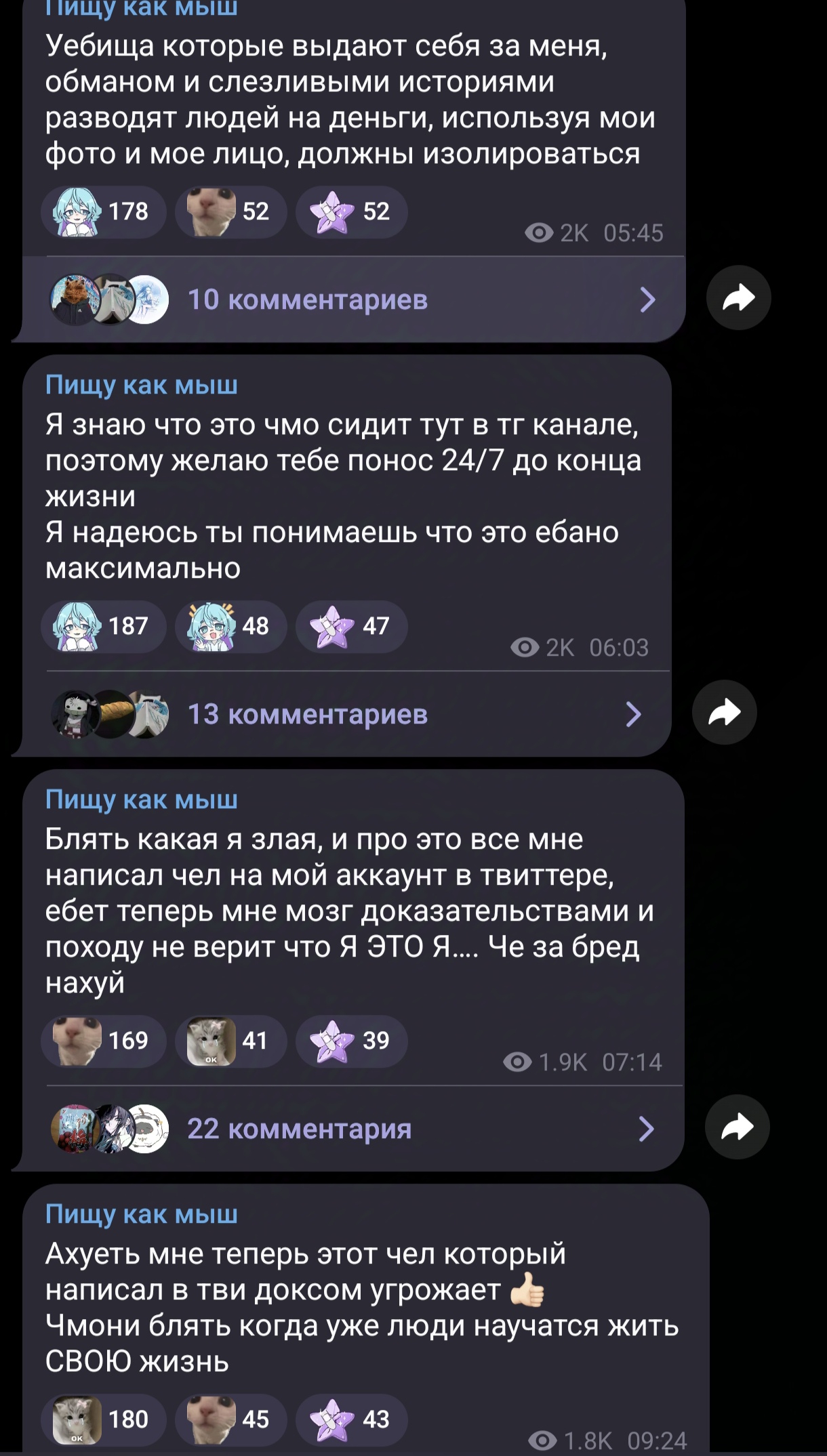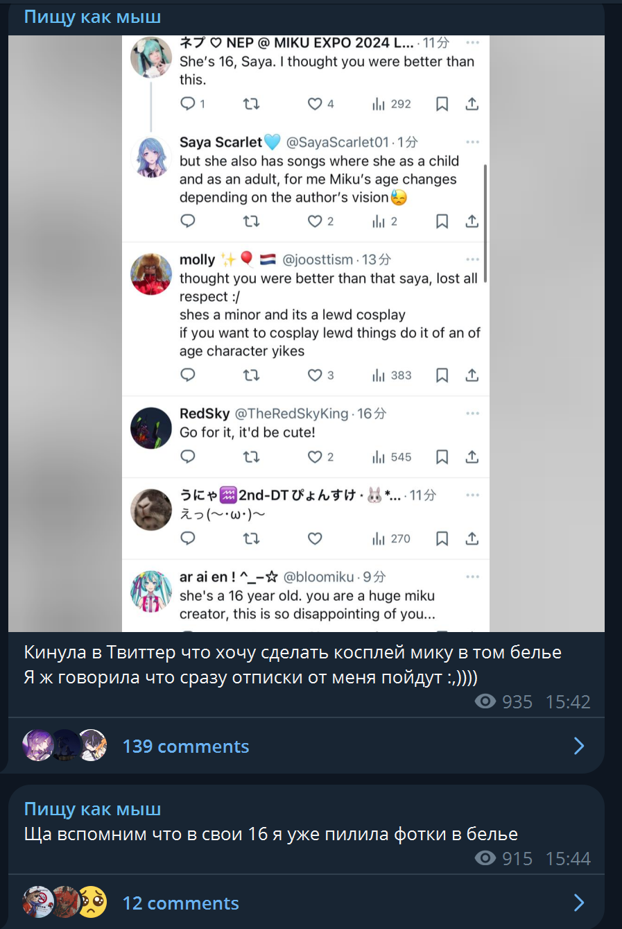 >>1770956 Про рекламу в телеге можно почитать. Как ей в Япохе предлагают 200-300к йен за рекламу. А тут написал кто-то из России и предложил 5к рублей. Ведь у неё целых 20к просмотров на видео. В комментах кто-то даже предложил согласиться, видимо всё ещё думают, что Саечка бедная и у неё нет денег.
