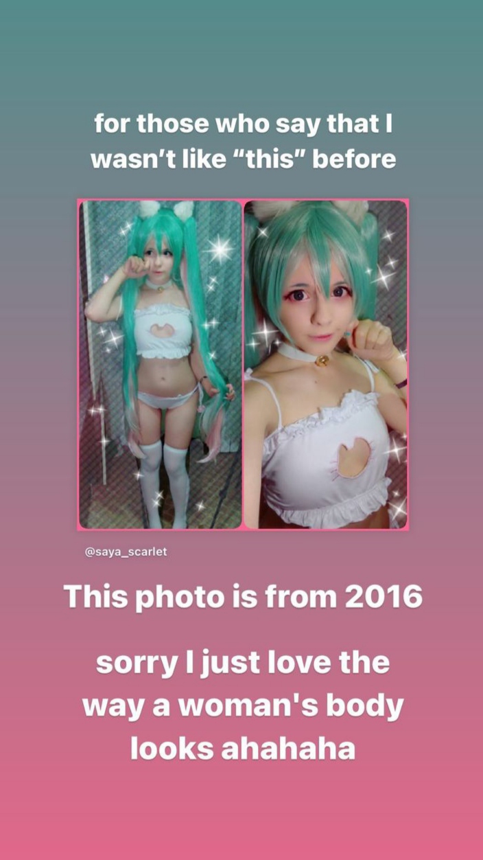 Мне было бы глубоко похуй на жиры Саи, если бы она не косплеила изначально худых по канону персонажей - Чии, Мику, Сая из новеллы, они же тощие и хрупкие все. А ей какая-нибудь не совсем худая Мадока бы подошла, или сиськи сделать и любую шлюху с выменем изображать, косплееры-поросята вполне себе живут и симпов имеют, если правильные образы выбирают.
