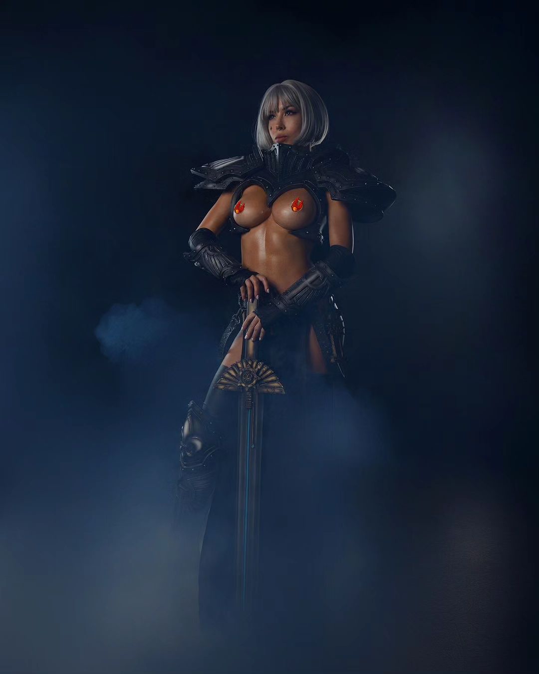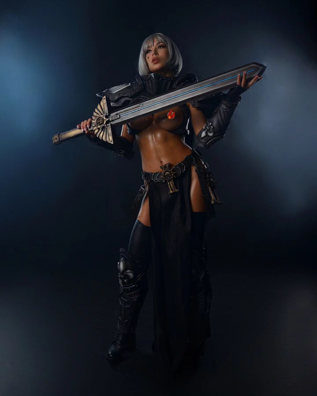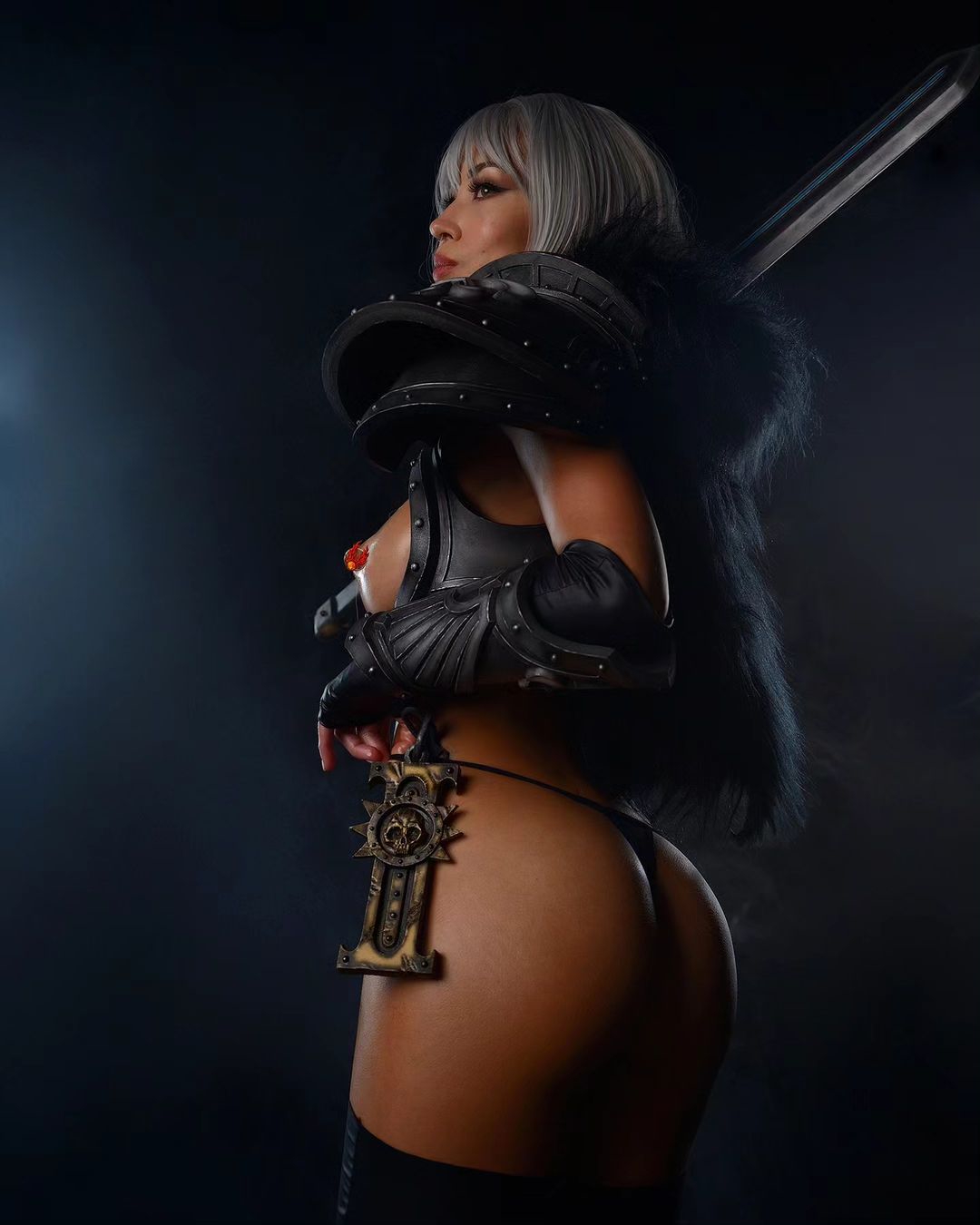 Жаль, она больше не делает подобных "полутряпочных" костюмов, которые хорошо у неё получались, как тот же арлекин. Теперь или полноценная броня (пусть даже в пляжном варианте), на которую много времени уходит, или съемки в обычном белье. Ничего плохого не вижу в таких упрощенных костюмах, тут только трусы разрушают образ, но их можно заменить табардом, набедренной повязкой или вообще чем угодно, как на последней фотке.