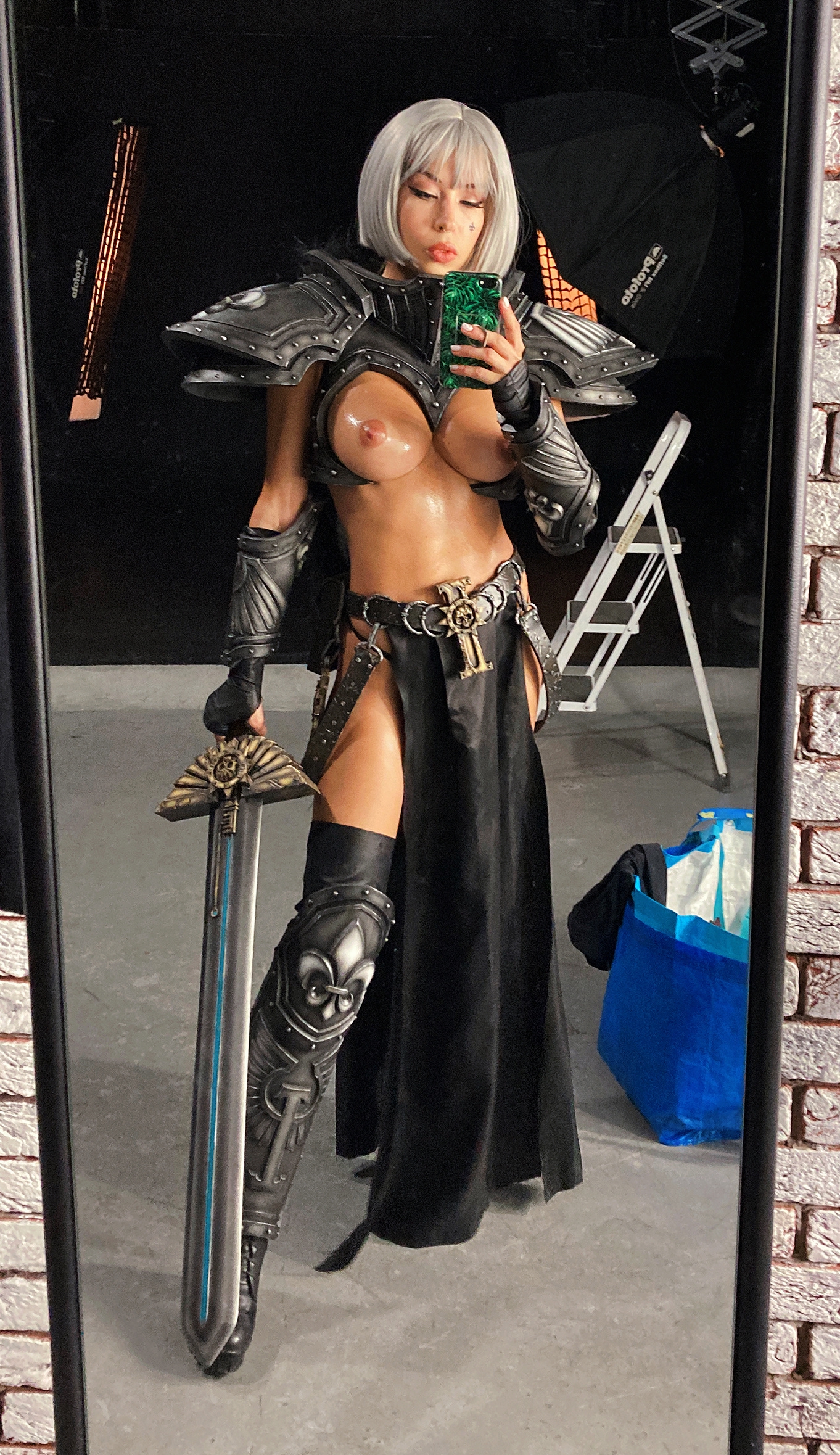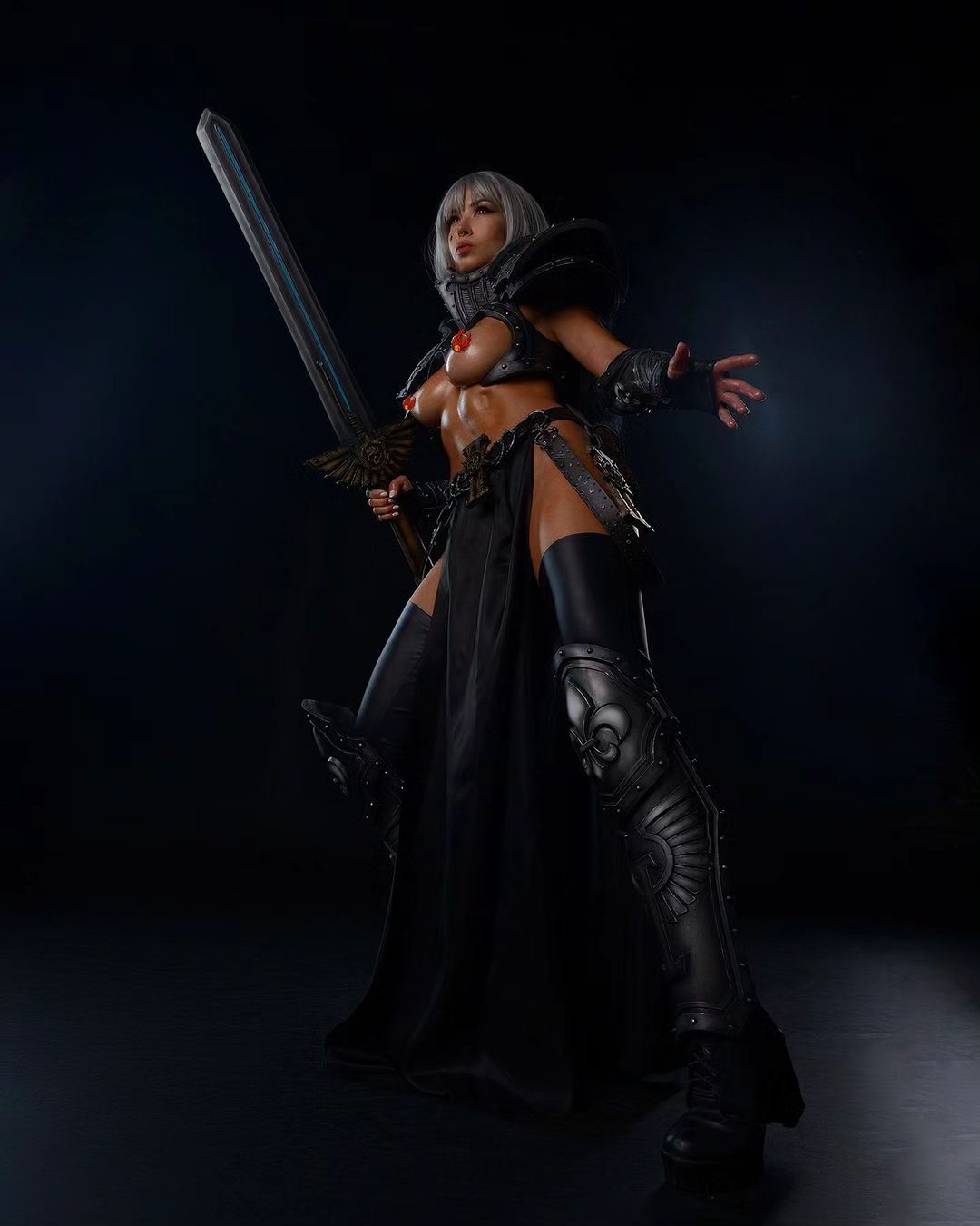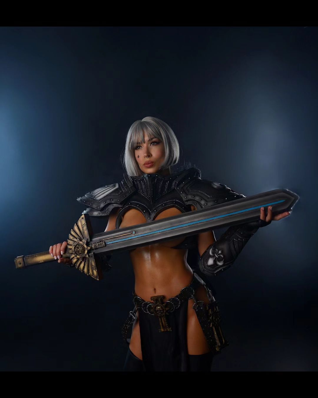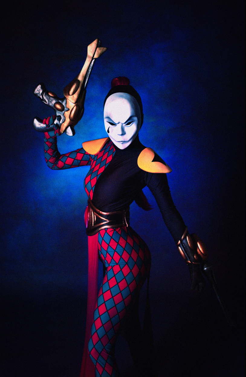 Жаль, она больше не делает подобных "полутряпочных" костюмов, которые хорошо у неё получались, как тот же арлекин. Теперь или полноценная броня (пусть даже в пляжном варианте), на которую много времени уходит, или съемки в обычном белье. Ничего плохого не вижу в таких упрощенных костюмах, тут только трусы разрушают образ, но их можно заменить табардом, набедренной повязкой или вообще чем угодно, как на последней фотке.