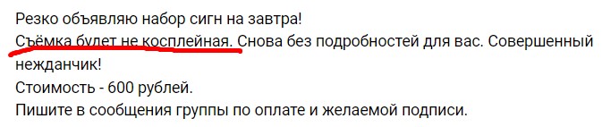 Ребята! Это свершилось! Наконец-то! Супер-предложение! Можно всего за 5 тысяч рублей купить слитый год назад фотосет! Или за 5 тысяч фотосет, который тоже был слит на прошлой неделе, а у фотографа стоит 3000 рублей! Успейте совершить выгодную покупку!