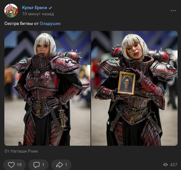 После того, как она завела Бусти, я немного надеялся, что пойдут более-менее частые косплеи, но оказалось, что для неё это такое же, как паблик и инста, средство приманки мажоров, которые могут оплатить сложный костюм и эксклюзивную фотосессию. Круто, конечно, что она делает шикарные проработанные доспехи, вот только их не видит никто. А из простых нарядов за эти два года она сшила только костюм Злой Королевы, который тоже пошёл на эксклюзив, только уже для SGGP. На Бусти в это время нет ничего, кроме сетов в стиле "возьму то, что есть в гардеробе, добавлю по-быстрому сшитый мини-лифчик и снимусь у дешманского фотографа". И получается так, что редкие TFP-сессии с хорошими фотографами уделывают всё, что она выкладывает за деньги.