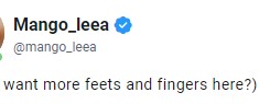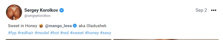 И кстати, такая путаница в именах Lia Mango, mango_leea, LeeaMango только вредит. Как её будут гуглить, если по сути у неё три разных имени? И я уже не говорю про Oladushek11. Обычно разными именами называются порнозвёзды, когда снимаются в каком-нибудь треше и не хотят, чтобы он был связан с их обычным сценическим именем. Воистину Оладух нашла себе брата по разуму в виде Мурбо. Другие эрокосплейщицы даже самые ноунеймовые и то лучше справляются с собственным продвижением и без помощи фотографов.