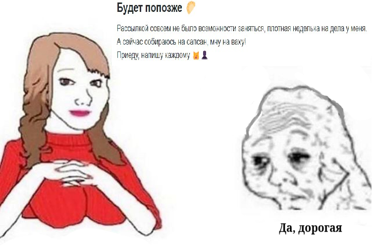 На Бусти она все-таки написала что-то. Но как же это смешно выглядит, учитывая какой болт она забивает на тамошних подписюнов. "Спасибо, что донатите мне, лошьё, хотя я нихуя для вас не делаю и постоянно скамлю. Люблю вас".