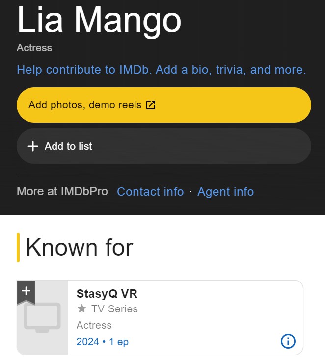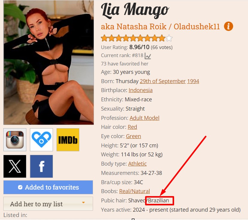 И главное, нахуя нужен цирк с именами? Уже сейчас на одном из самых популярных агрегаторов моделей thenude есть вся инфа про Натаху со ссылками на все соцсети. Даже на imdb кто-то её страницу создал, где написано, что она Наташа Роик фром Раша. У неё в комментах в группе ВК какой-то чел называл её Lia Mango, то есть даже там уже знают.