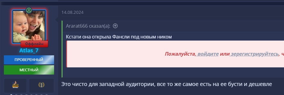 А насчёт Фансли я думаю, что Мурбо тупо потерял интерес, поняв, что на Натахе там особо не заработать. Она ведь по сути выкладывала только его фотки явно сделанные бесплатно в расчете на заработок. Своих денег ей не хватит, чтобы так же регулярно делать посты, да и отдачи почти никакой не будет. Последним предсмертным хрипом был ролик с переодеванием, но и он не принёс подписчиков. Короче, полный провал.
