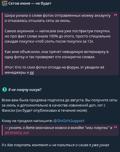 Каждый раз, когда я говорю о сливах за 300 бачей - мне прилетают репорты и бан за вайп >>1779502 А ты можешь верить во что хочешь, а про 300$ и сливы инфа верная