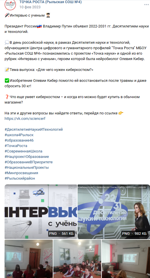 1. Новая версия киберкостюма 2. Идет внедрение киберкостюма для реабилитации инсультов и других повреждений. Медицинская лицензия в процессе получения. 3. Идет внедрение киберпечатки для управления протезами. 4. Выходит фильм с участием Олевии в котором показаны работы с киберкостюмом.