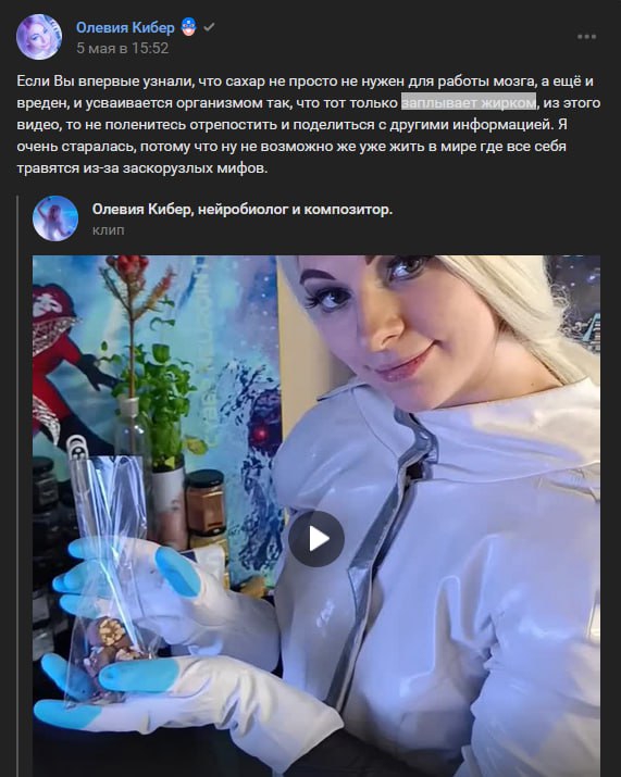 Напоминаю, Кибершмара Оля Левицкая (ныне Олевия) не имеет никакого отношения к медицине и не изучала анатомию и блок по ЦНС. Училась в Тимирязьке на зоотехника.