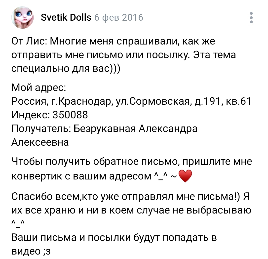 Первый раз они привели меня в блогинг - сначала был просто маленький паблик в ВК, а потом все это переросло в один из крупнейших Ютуб каналов о куклах в России! Это было прекрасное время- съемки собственных сериалов, коллаборации, милые фан-встречи, знакомства. Кстати, благодаря участию в кукольных конкурсах, у меня появилась подруга из моего же города, с которой мы дружим и по сей день!