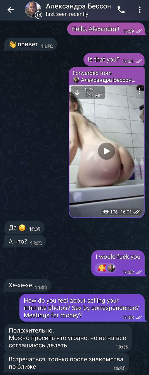 >>1796824 вот это немытая зря, ой зря. Сейчас сдеанонят этого типа, начнут ему на работу кидать видосы, чем зарабатывает немытая, его родителям, пусть посмотрят, с кем сыночка-корзиночка связался Посмотрят как немытая за 200 долларов готова снять что угодно. Короче, я за попкорном